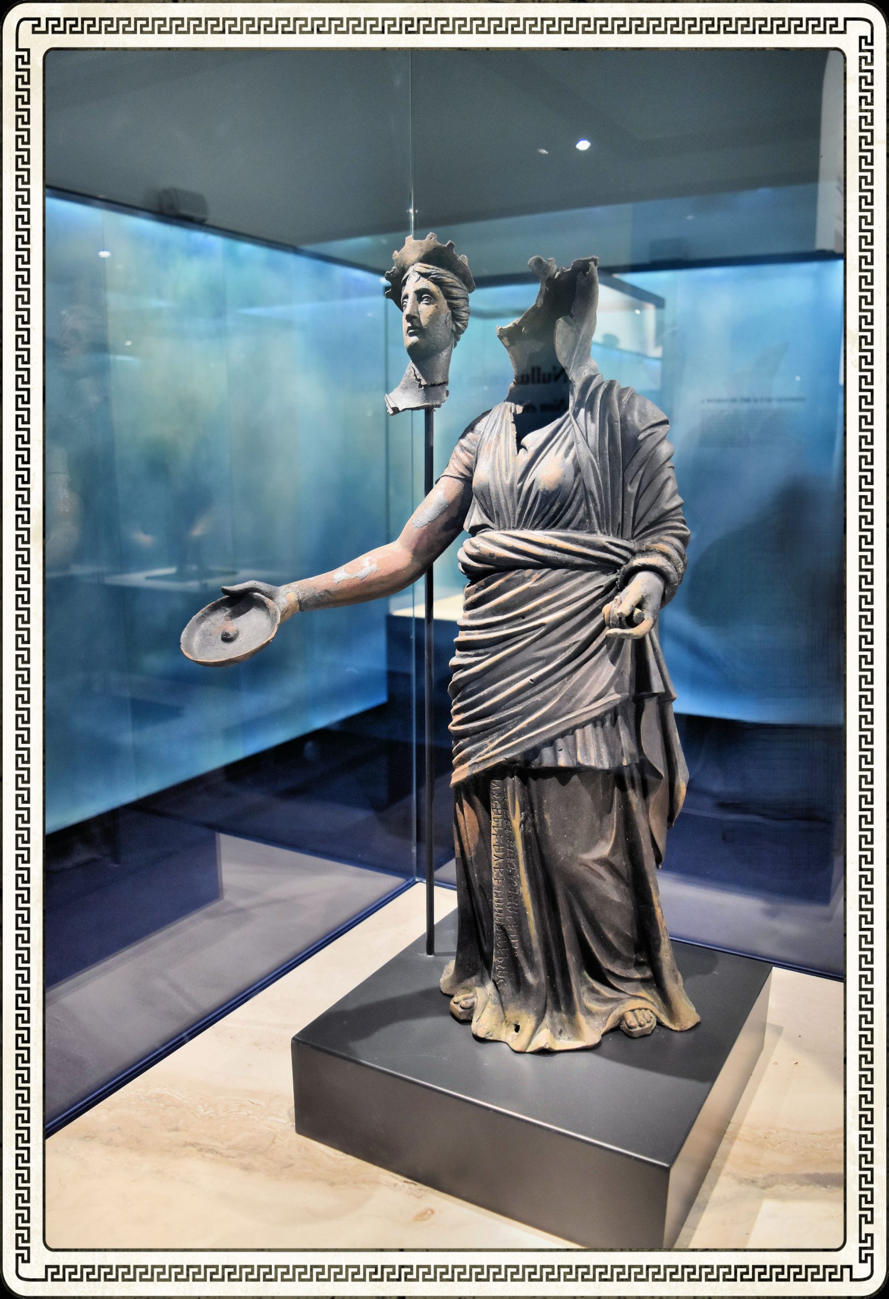 Statua femminile in bronzo con dedica in etrusco al Flere di Havens (Nume della Fonte) – Bagno Grande, San Casciano dei Bagni, II secolo a.C. – Dalla mostra Gli dei…