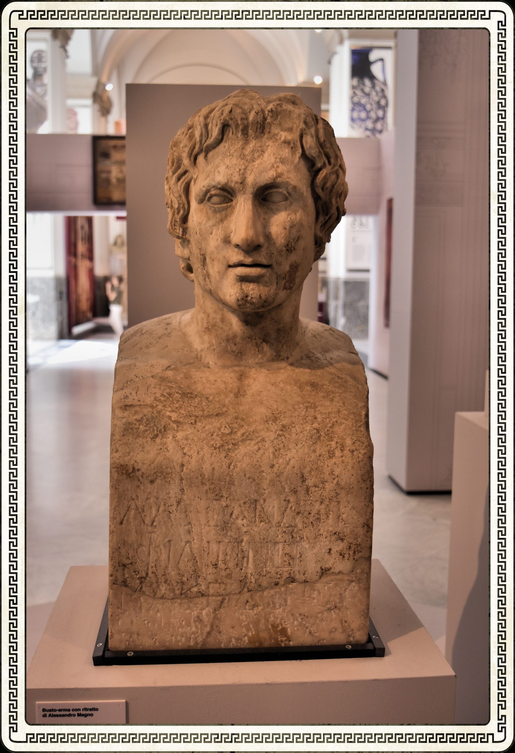 Busto-erma con ritratto di Alessandro Magno – I sec. d.C. – Marmo – Da Tivoli – Parigi, Musée du Louvre – Dalla mostra Alessandro Magno e l’Oriente – Museo Archeologico…