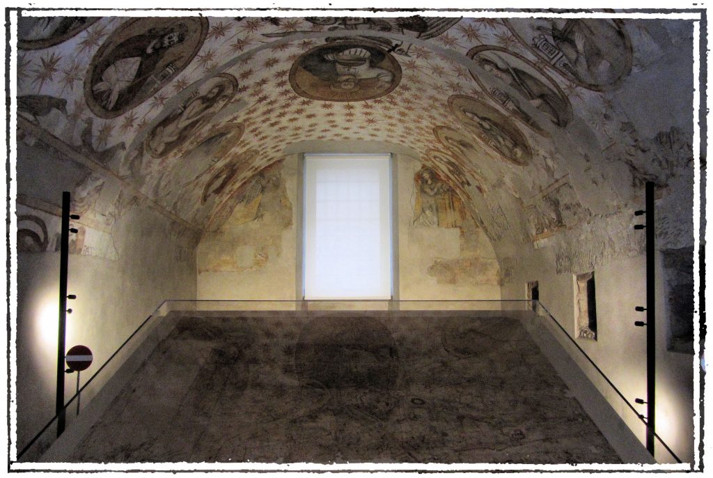 La cappella affrescata e, in basso, la mappa di Nolli – Foto: Stefania Rega