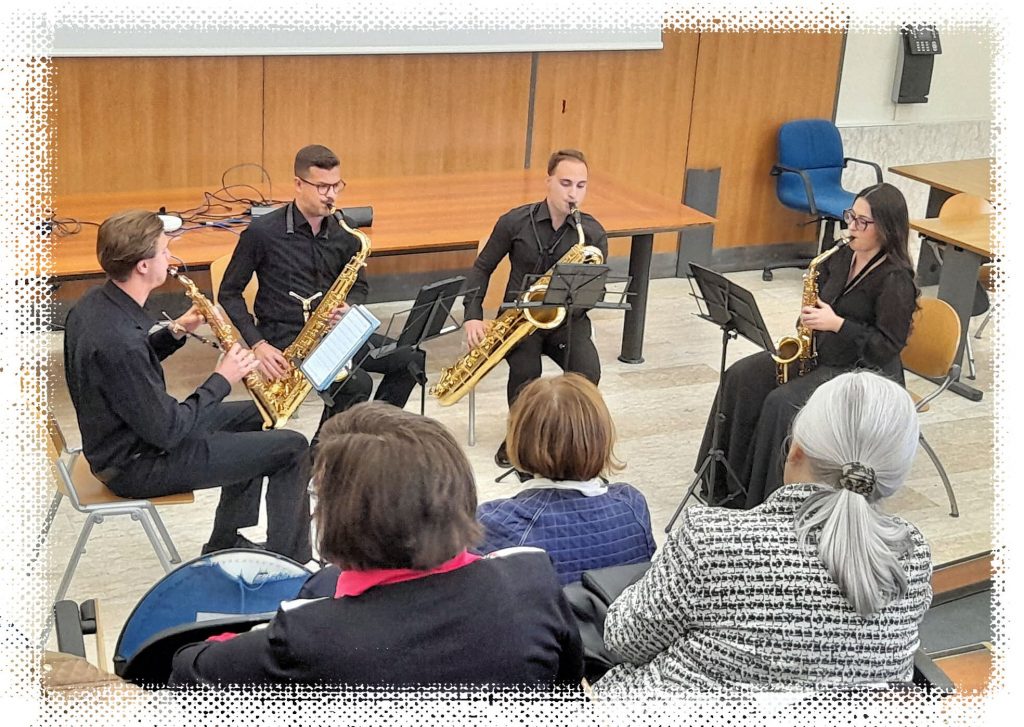 L’evento si è concluso con un concerto del Duae Siciliae Saxophon Quartet, composto da giovani talenti del Conservatorio San Pietro a Majella di Napoli: Gaetano Rizzo (sax soprano), Marco Nero (sax tenore), Lorenzo Esposito (sax baritono), Laura Sorrentino (sax alto).