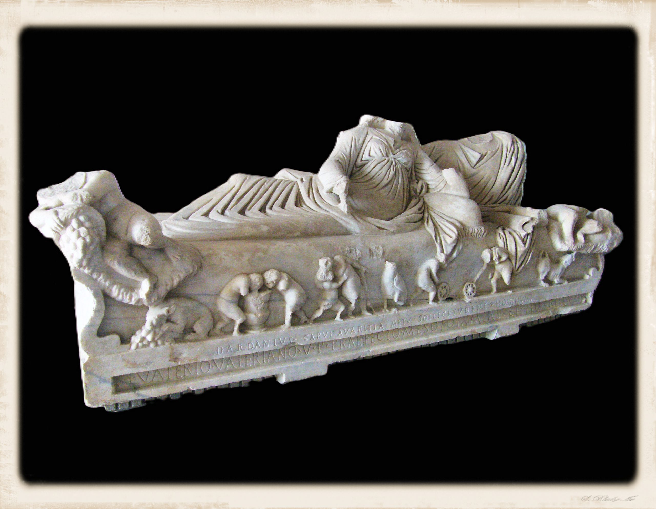 Coperchio del sarcofago di L. Valerio Valeriano – via Domiziana, loc. Montenuovo – Marmo – Metà III sec. d.C. – Museo Archeologico dei Campi Flegrei, Bacoli (Napoli) – Foto: Giorgio…