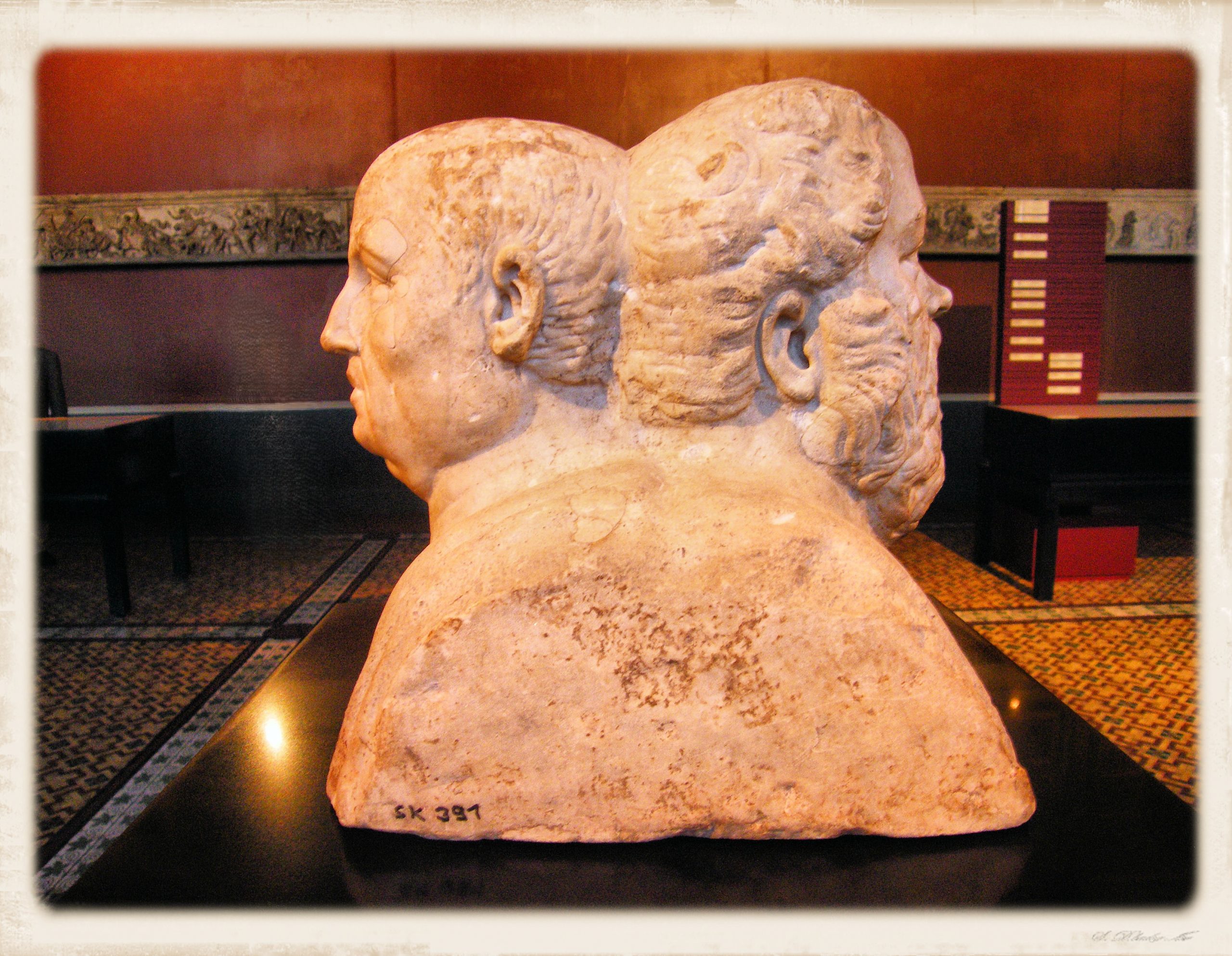 Doppio ritratto di Socrate e Seneca con iscrizione degli antichi nomi – Copia romana di III secolo d.C. di un modello greco di I secolo d.C. – Marmo – Neu…