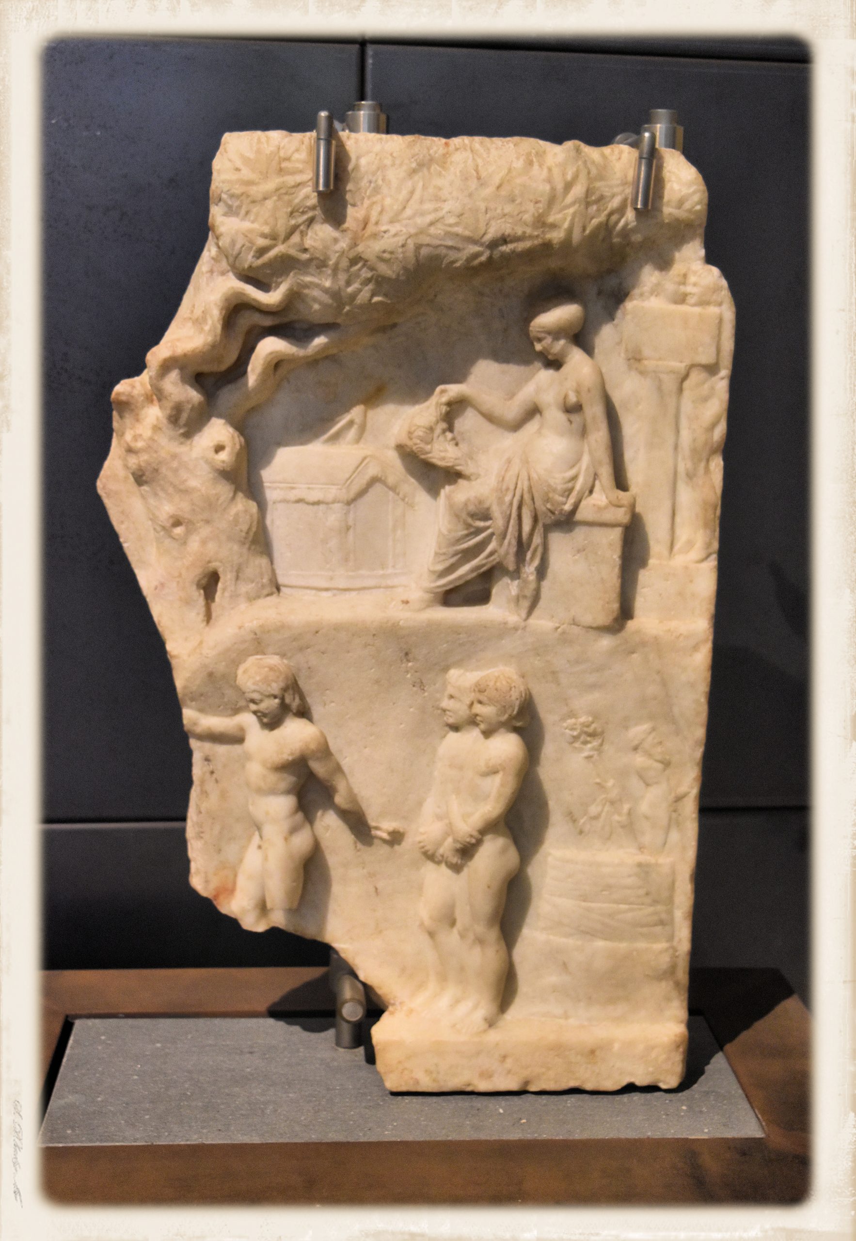Rilievo con scena di iniziazione dionisiaca – Marmo pentelico – Da originale ellenistico del II secolo a.C. – Dagli horti di Mecenate, rinvenuto nelle vicinanze dell’Auditorium (1876) – Musei Capitolini,…