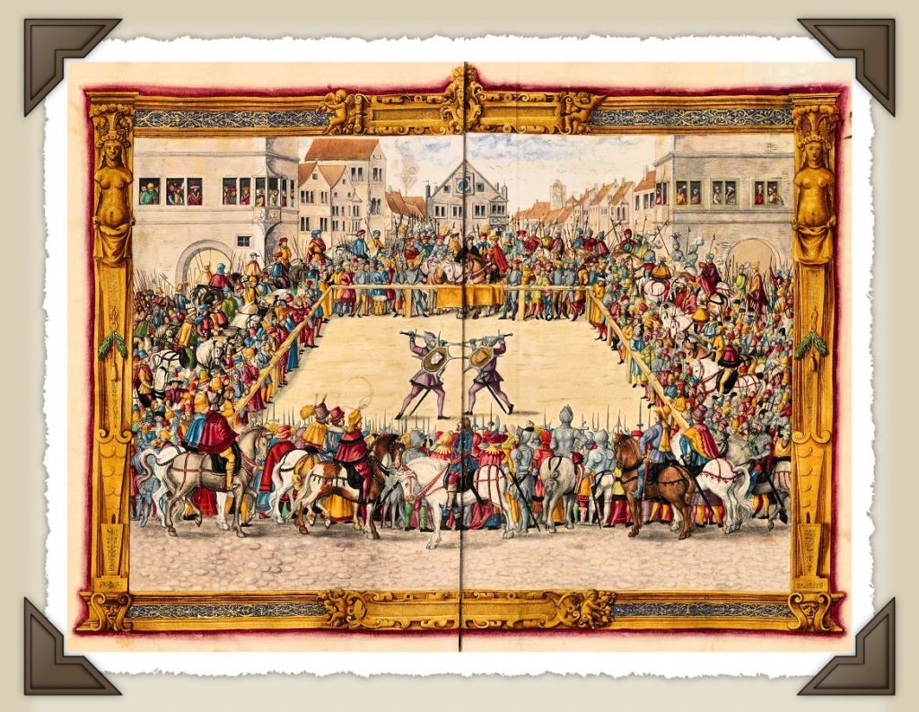 Riproduzione di duello giudiziario – Licenza: Public domain, via Wikimedia Commons