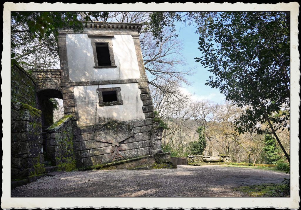 A poca distanza da qui vi è la fontana con Pegaso, il cavallo alato. Si racconta che l’opera fosse circondata da dieci Muse e dalle statue di Giove, Apollo, Bacco e Mercurio ai quattro angoli, di cui oggi non resta più alcuna traccia a causa dei secoli di abbandono. Procedendo, si susseguono figure mitologiche, fino ad arrivare alla curiosa Casa pendente, punto di ascensione al livello superiore del parco. Si tratta di un grottesco edificio di due piani costruito su un basamento inclinato di circa 25 gradi: per avere un termine di paragone, basta pensare che attualmente si calcola che la pendenza della Torre di Pisa corrisponde all’incirca a 4 gradi. Nonostante gli interni spogli, l’inclinazione delle pareti e del pavimento fa sì che, entrando nella struttura, si percepiscano immediatamente le sensazioni di vertigine e di forte sbilanciamento, volutamente studiate per far perdere al visitatore il senso dell’equilibrio e dell’orientamento.
