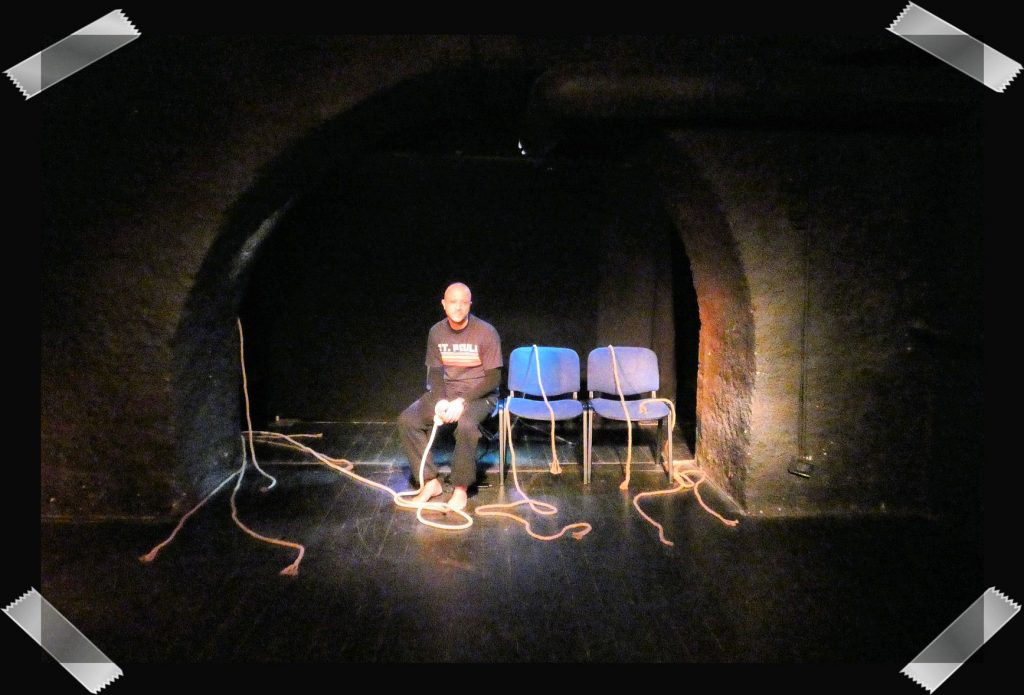 Il protagonista entra in scena, ascoltando della musica, e si siede. Sul palco sono presenti soltanto delle sedie in fila e delle funi che si annodano intorno al suo polso e lo tengono legato, come se non potesse fuggire da lì. Così inizia il suo “viaggio di scoperta” mentre aspetta il suo turno in una sala d’attesa. Il pubblico si rende presto conto di far parte della scena, che il teatro tutto è una sala d’attesa.