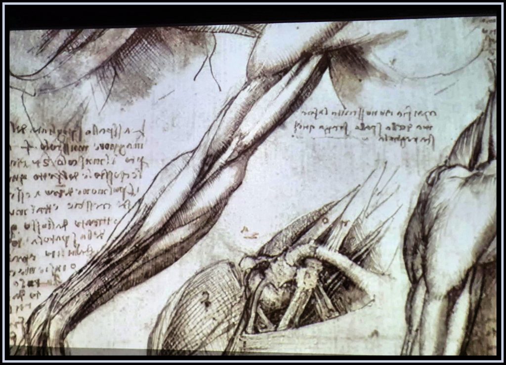 Un corpus di portata rilevante: 1751 disegni e studi di anatomia e di meccanica che coprono il periodo dal 1478 al 1519. In realtà si evidenzia anche la tecnica della scrittura specchiata; la mostra indugia nello scorrimento delle tavole soprattutto sui fogli 518, mostra studi geometrici, piramidi, coni, sfere legati a leggi armoniche e il 239 documenta la vita di bottega e i calcoli matematici in cui si può leggere il tratto pittorico tipico del suo segno artistico, dotato di grande capacità realistica, ma soprattutto la tecnica delle ombre sui ritratti, sugli oggetti che realizza.