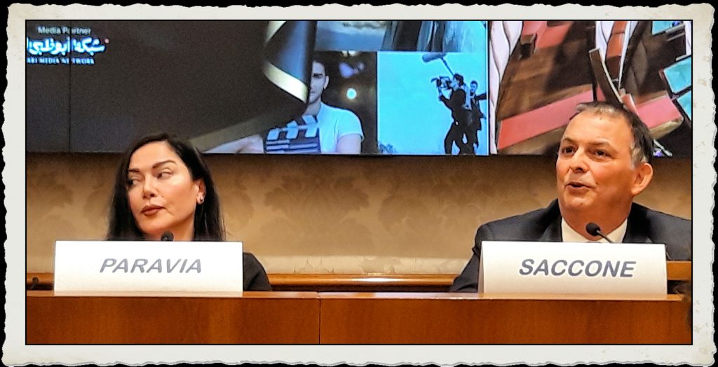 L’intervento del senatore Marco Scurria si è concentrato, invece, sulla constatazione che questo festival nasce da una straordinaria capacità di fare sistema. Per realizzarlo si sono mossi in sinergia numerosi attori: in prima linea A.N.G.E.L.S. – Associazione Nazionale Giovani Energie Latrici di Solidarietà APS, creata proprio da Benedetta Paravia, con il patrocinio del Ministero degli Affari Esteri e della Cooperazione Internazionale, del Ministero della Cultura, del Ministero del Turismo e della Regione Lazio. Per la parte emiratina il festival è patrocinato dal Ministero degli Affari Esteri e della Cooperazione Internazionale degli Emirati Arabi Uniti, in collaborazione con il Ministero della Cultura, il Ministero dell’Istruzione Superiore e della Ricerca Scientifica e l’Ambasciata d’Italia ad Abu Dhabi, con le media partnership di RAI e Abu Dhabi Media.