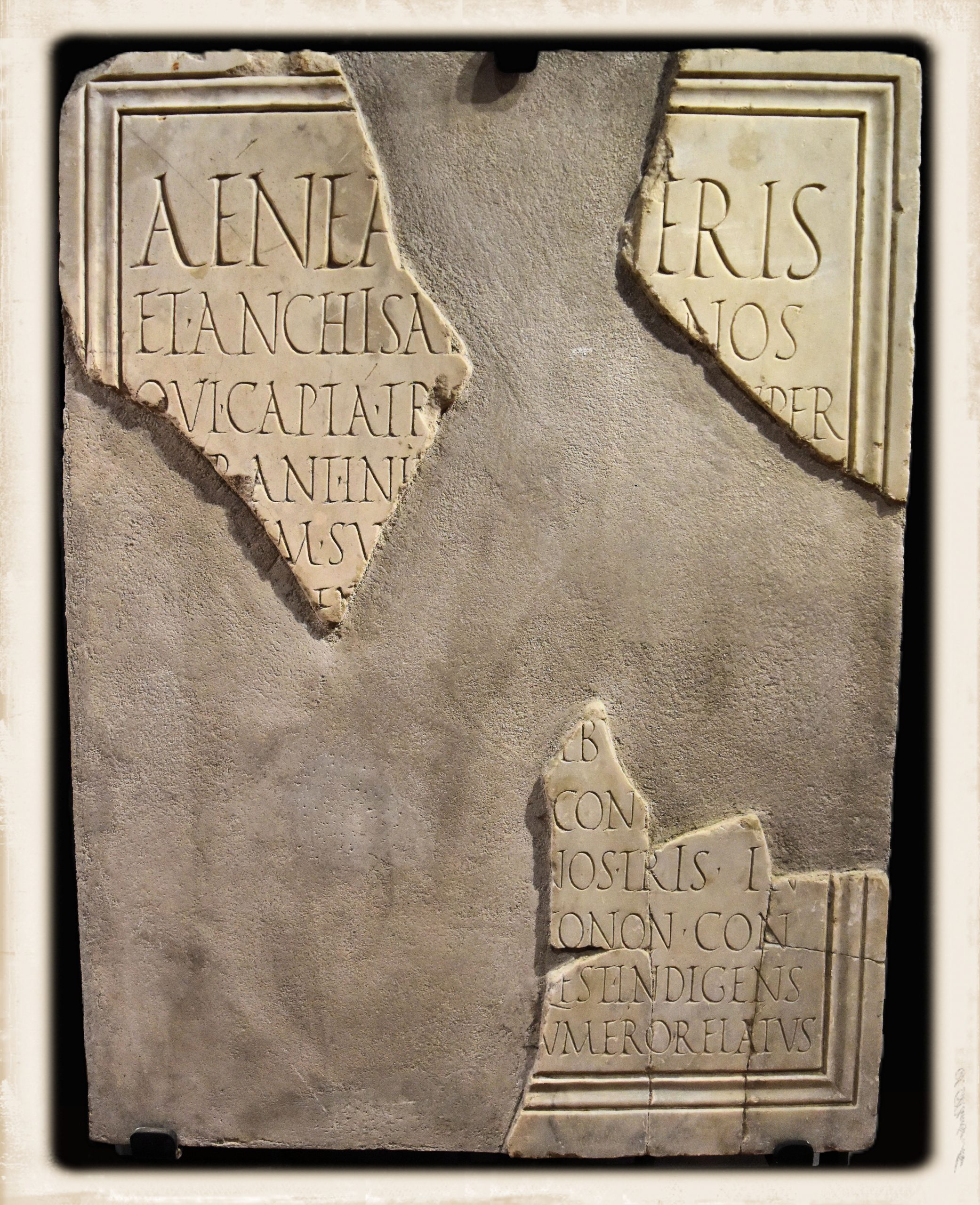 Elogio di Enea – Marmo – 7 a.C. – 2 d.C. – Pompei, Foro, nei pressi del cd. Edificio di Eumachia (1817) – Inv. 3819 (CIL X, 808) – Museo Archeologico Nazionale di Napoli (MANN), Sezione Epigrafica – Foto: Giorgio Manusakis
