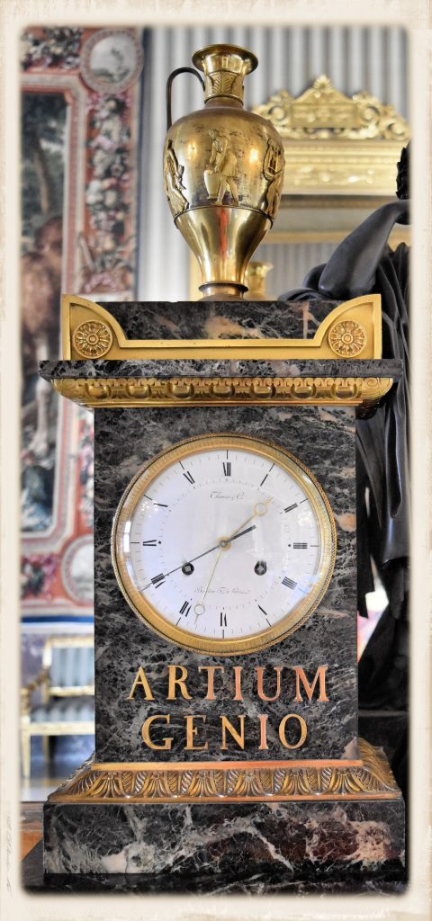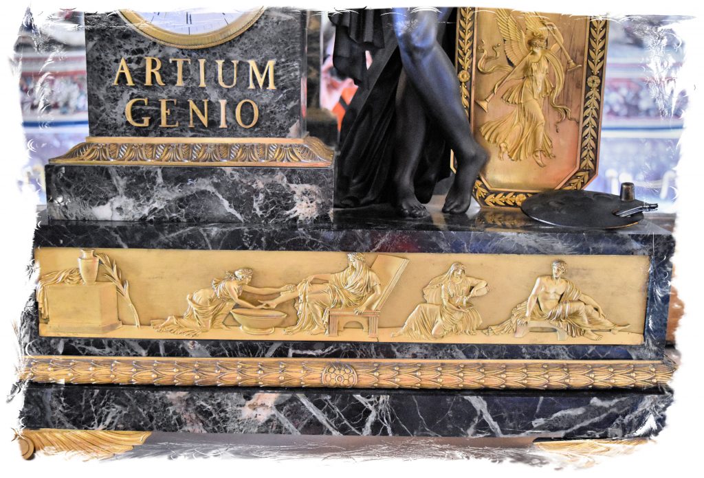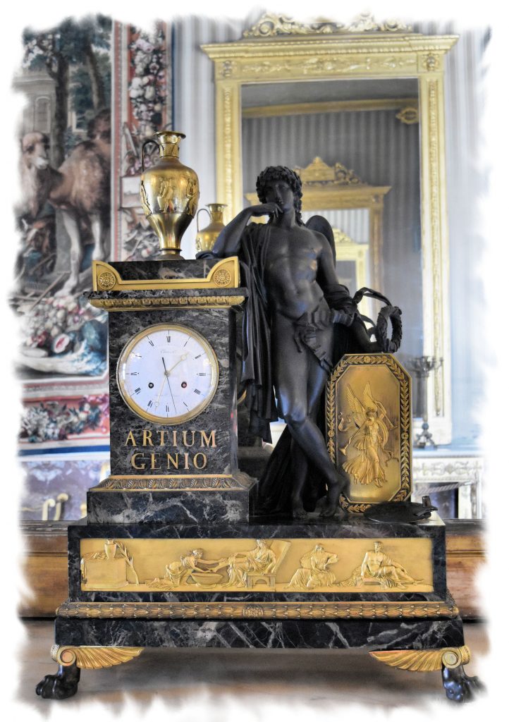 Pierre Philippe Thomire (Parigi 1751-1843), Jean Simon Bourdier (Parigi, doc. 1787-1825) – Orologio con il Genio delle Arti – Bronzo patinato e dorato, marmo verde antico – Firmato, documentato ante 1810 – Collezione Murat – Museo di Palazzo Reale, Napoli – Foto: Giorgio Manusakis