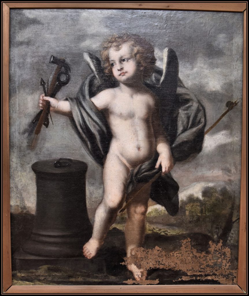 Belisario Corenzio (Arcadia di Morea 1588 – Napoli post. 1646) – Putti con i simboli della Passione (tunica, lanterna – colonnina, chiodi, tenaglia, martello – croce, lancia – la Veronica) – Olio su tela – Museo della Certosa di San Martino, Napoli – Foto: Giorgio Manusakis