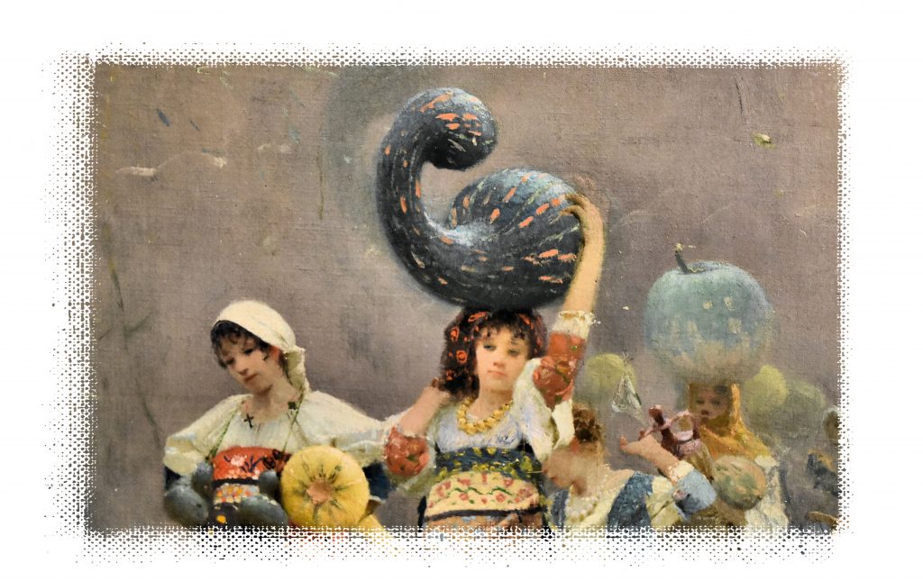 Francesco Paolo Michetti – La raccolta delle zucche – Olio su tela – 1873 – Collezione privata – Dalla mostra sull’impressionismo napoletano di Palazzo Zevallos Stigliano, Napoli (6 dicembre 2017 – 8 aprile 2018) – Foto: Giorgio Manusakis