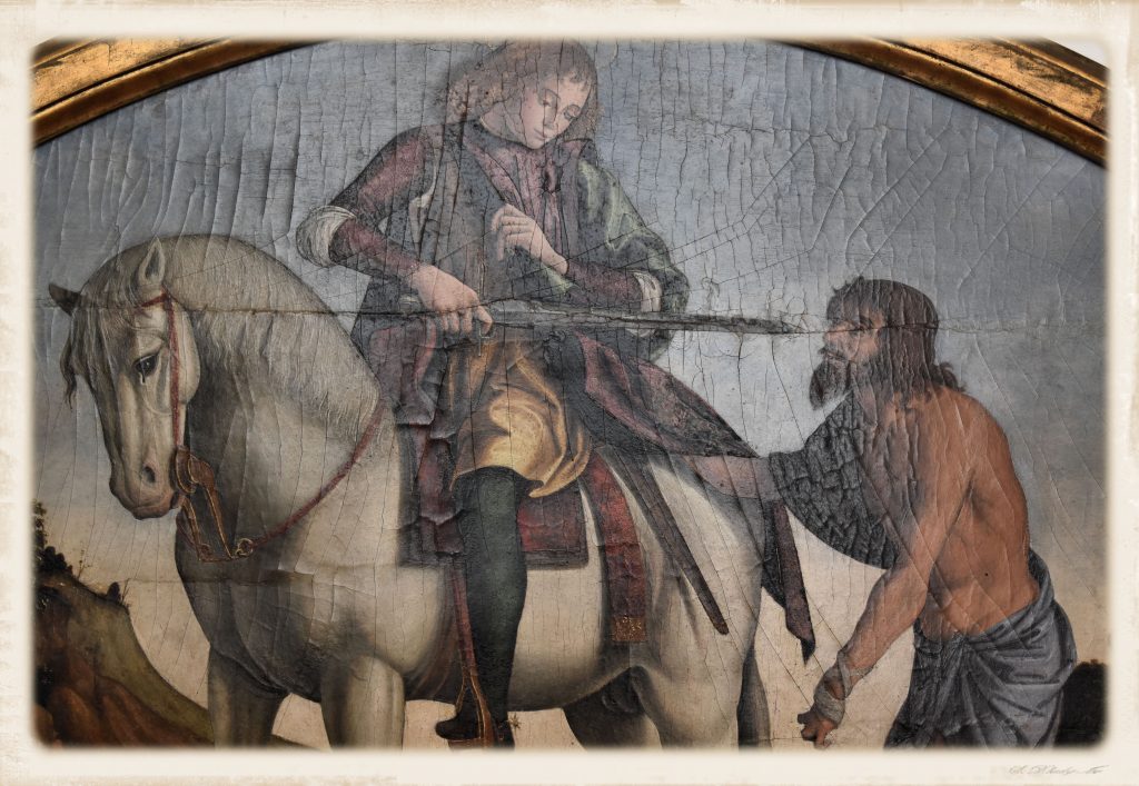 Protasio Crivelli (secc. XV-XVI) – San Martino divide il mantello col povero – Tempera su tavola – Provenienza: dalla Chiesa della Certosa; poi nella ‘Foresteria’, nella “stanza del vino ammanito” Certosa e Museo Nazionale di San Martino, Napoli – Foto: Giorgio Manusakis