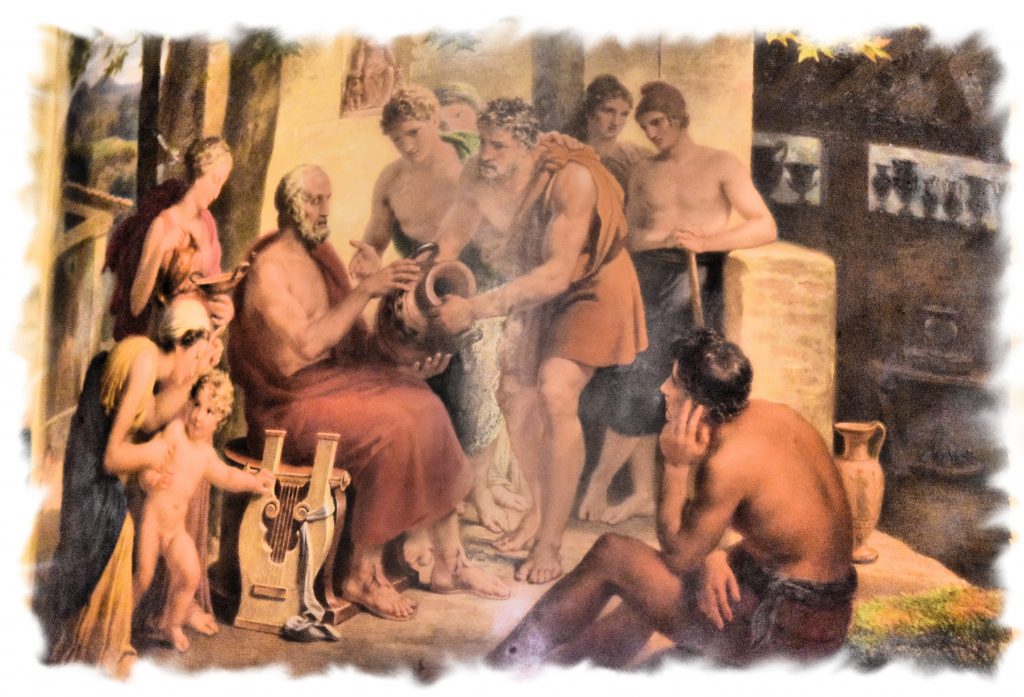 Manifattura di Sevres, dipinto da Antoine Beranger (Parigi 1785 – Sevres 1867) su originale di Francois Gerard (Roma 1770 – Parigi 1837) – Vaso Medici con Omero tra i vasai di Samo – Firmato, documentato al 1824-1825 – Prov: dono della Corte di Francia a Francesco I Borbone nel 1830 – Museo di Palazzo Reale, Napoli – Foto: Giorgio Manusakis