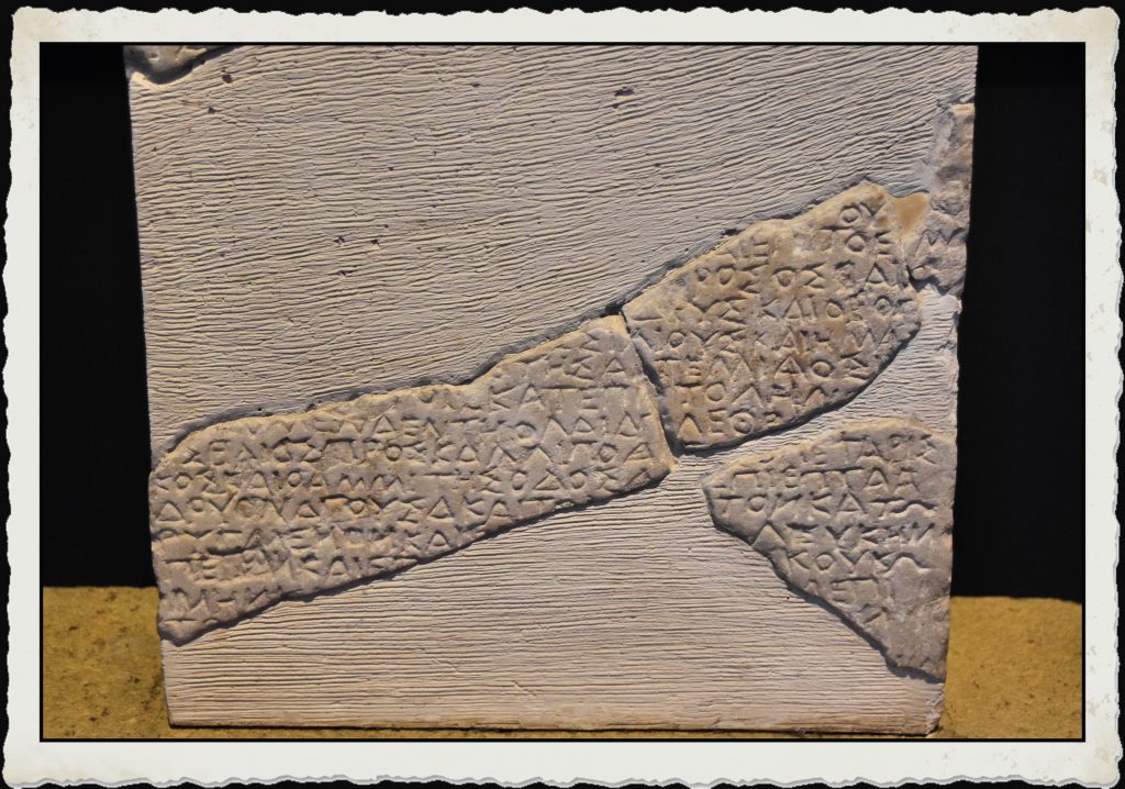 Legge reale che definisce i confini tra determinate città del nord della Calcidica – Monte Cholomondas, Calcidica (Grecia) – 350-300 a.C. – Museo Archeologico di Salonicco – Foto: Giorgio Manusakis