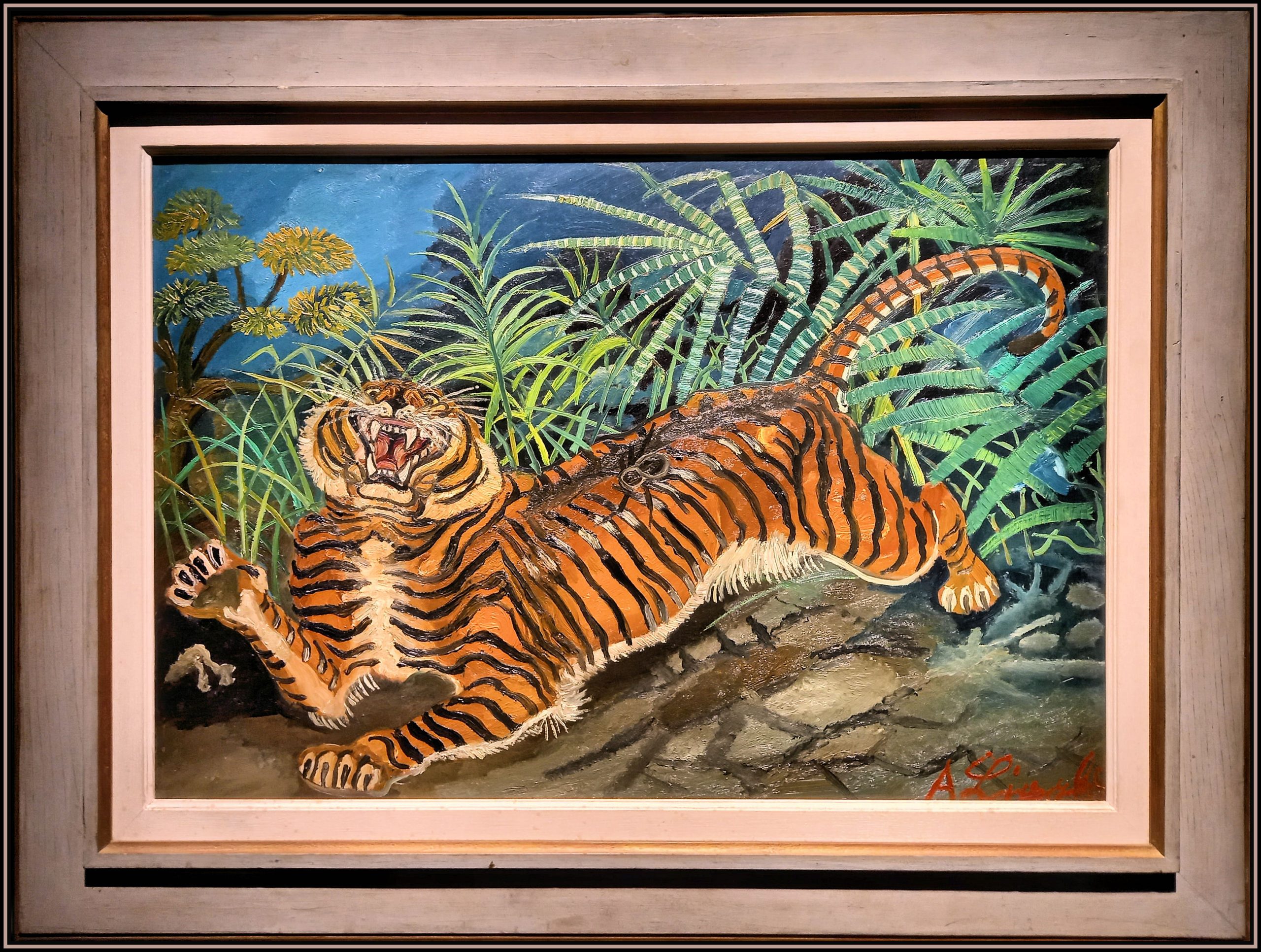 Antonio Ligabue – Tigre con ragno – 1953 – Olio su faesite – Collezione privata – Dalla mostra presso la Promotrice di Belle Arti di Torino (26 gennaio – 26 maggio 2024) – Foto: Giulietta Vizzotto