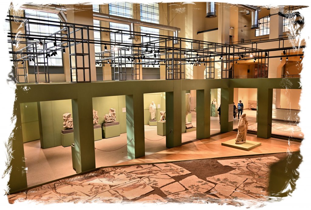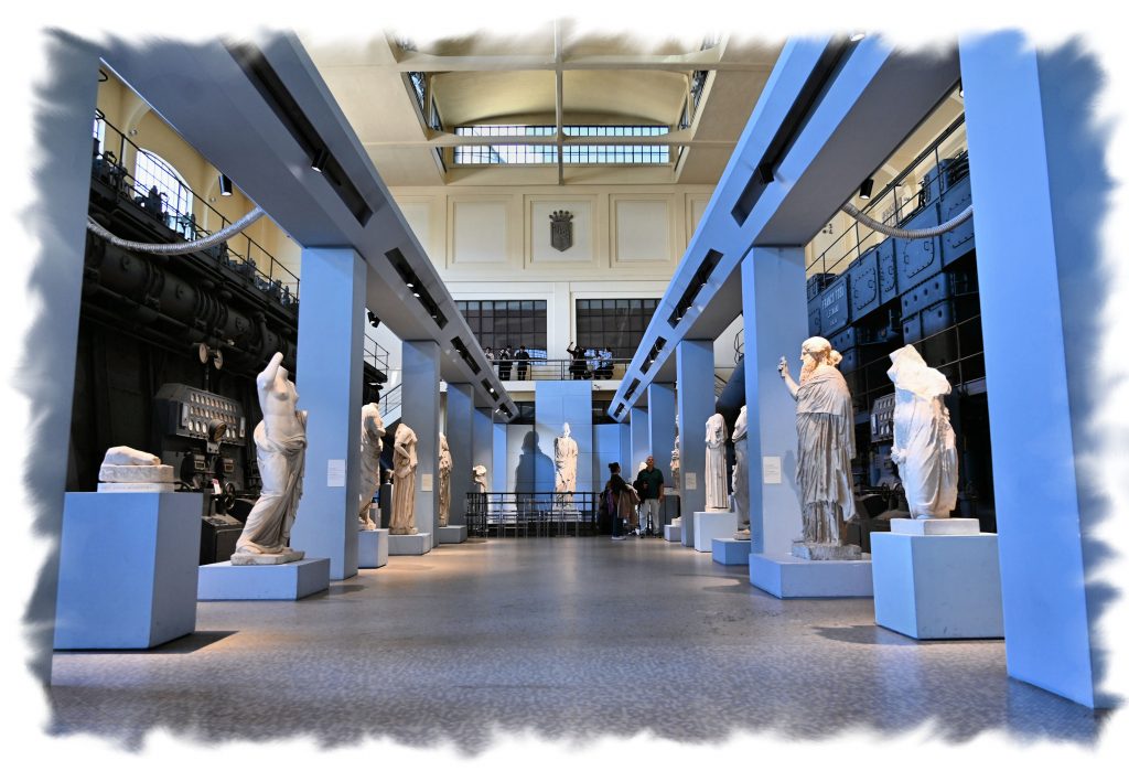 Fra valvole e ingranaggi spicca il bianco candido delle sculture classiche. Tra le opere da ammirare vanno ricordatela statua di Atena, alta 2,83 m, rinvenuta durante uno scavo nel 1887 a piazza Sciarra; la statua di Artemide, copia di età severiana (193-217 d.C.) da originale greco della metà del II secolo a.C.; la statua di Agrippina, riportata alla luce nel 1885 durante gli scavi per la costruzione dell’ospedale militare del Celio; la statua della Fortuna, i cui frammenti colossali sono stati datati al 101 a.C. e sembra che appartenessero a una scultura alta 8 m, posizionata presso l’attuale Largo Argentina.